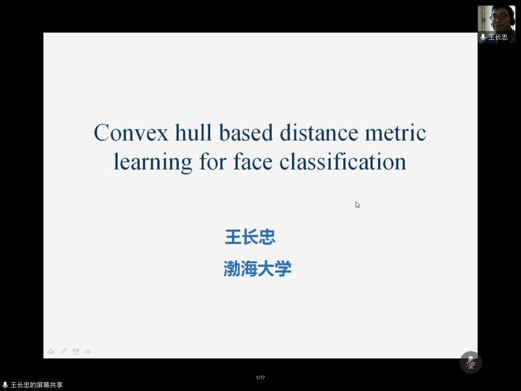 应公司邀请,5月19日下午,渤海大学王长忠教授在腾讯会议作了题为《Convex hull based distance metric learning for face classification》的报告。相关师生聆听了此次报告,报告由林国平教授主持。