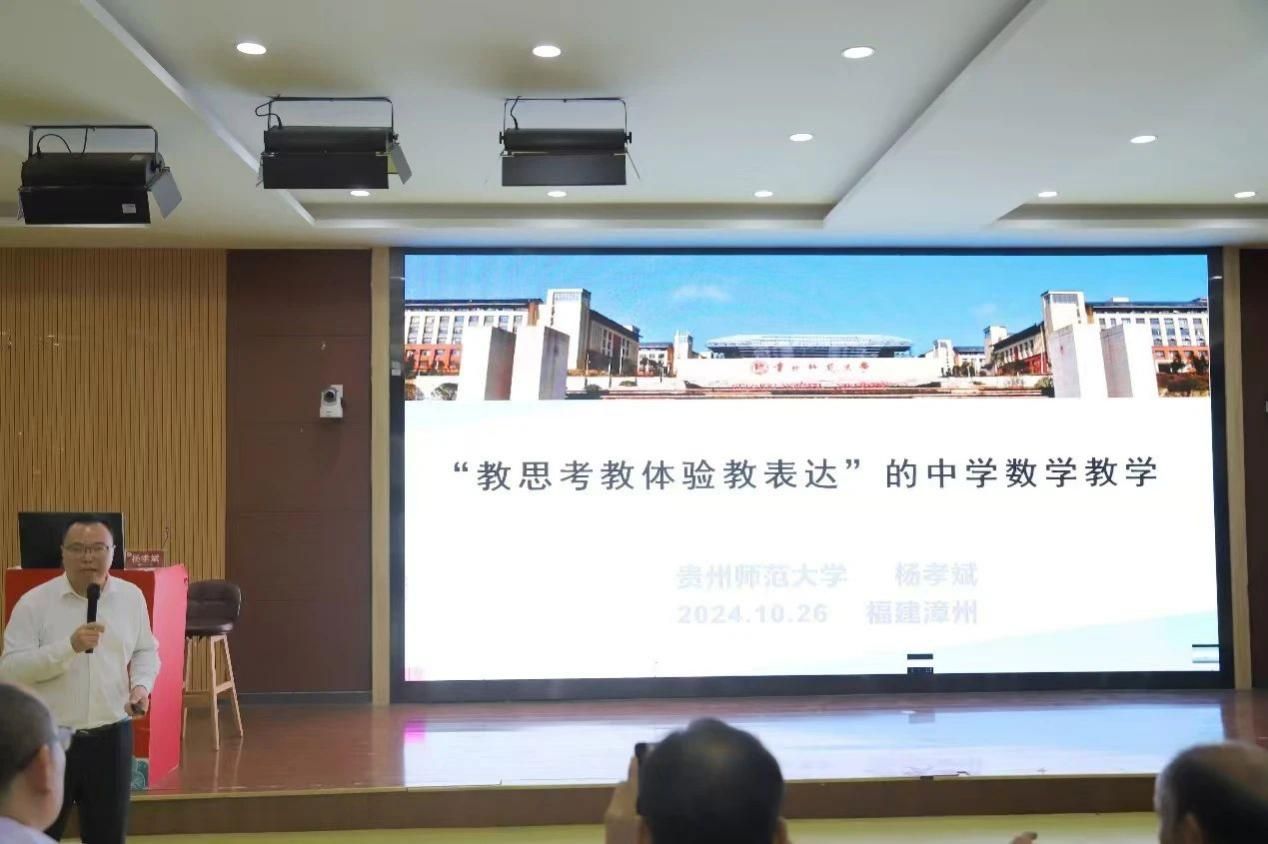 贵州师范大学杨孝斌教授作题为《“教思考教体验教表达”的中学数学教学》的讲座。杨孝斌教授的“教思考教体验教表达”的中学数学教学理念强调在教学中融入思考、体验与表达三个方面,旨在培养员工的核心素养。这一理念倡导通过创设情境引发员工思考,通过实践活动加深体验,并鼓励员工积极表达自己的见解,促进其全面发展。三者相互支撑,共同推动员工在理解和应用数学知识的过程中提升解决问题的能力。