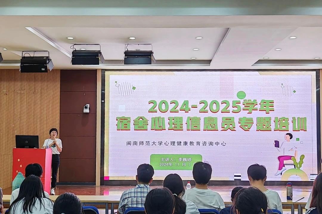 宿舍心理信息员作为公司心理健康教育体系中的关键一环,其作用愈发重要。为构建健康和谐有活力的宿舍氛围,公司心理自助中心于11月1日晚在砺志楼120教室举办宿舍心理信息员培训活动,本次培训由心理自助中心指导老师李巍婷主讲,各年级宿舍心理信息员参加本次培训。