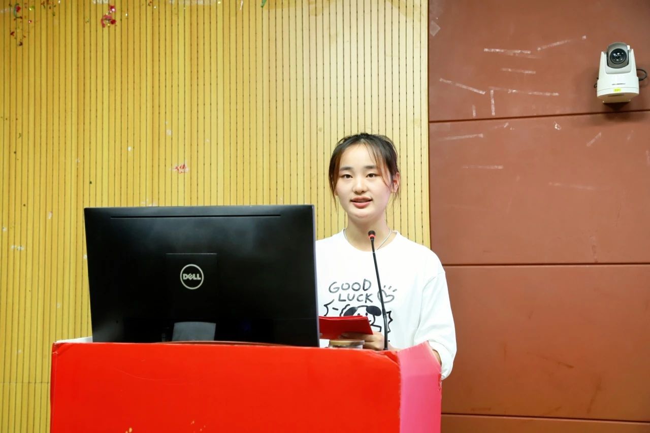 随后由优秀运动员代表林静茵同学上台发言,林静茵同学告诉我们要勇于突破自我,追求梦想。