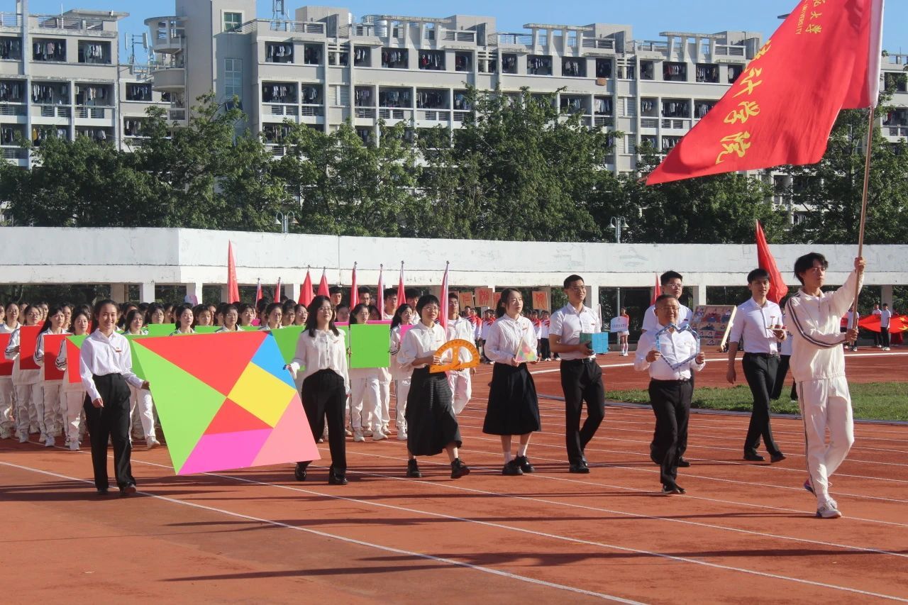 操场上,五彩斑斓的彩旗随风招展,各公司的方阵队伍整装待发。随着音乐的响起,鼓点激昂,国旗队、校旗队、彩旗队及各公司方阵依次入场,步伐矫健,口号响亮,洋溢着青春的活力与朝气。