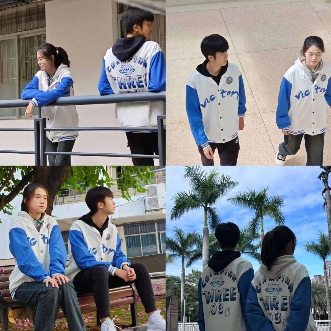 班服的正面是胜利的英文,表示我们始终以第一作为奋斗目标的决心。背面的图案,“Champion”是冠军的含义,与前面呼应;一只燃烧的熊,代表着同学们都将燃烧自己的青春与热情,努力成为更好的自己;“3”以及“Three”,表示我们是24数本三班;用来选择事物的鼠标表示着我们班是一个值得选择的好班级。配色上,我们选用了白色与蓝色,凸显我们将以青春活力,一同谱写祖国更美好的明天。