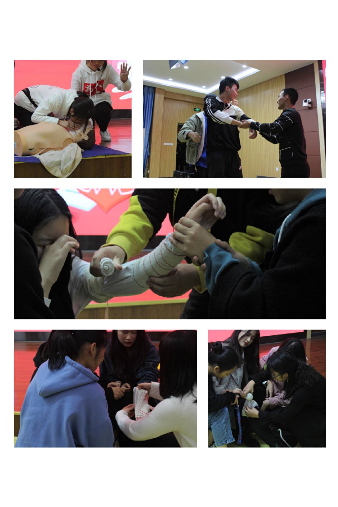 赛前,校红十字会的志愿者为员工开展为期三日的急救技能培训,培训包含“急救箱药品、清创及消毒的理论知识”、“清创与包扎”和“海姆立克急救法及心肺复苏(cpr)”等理论知识和应急方法。