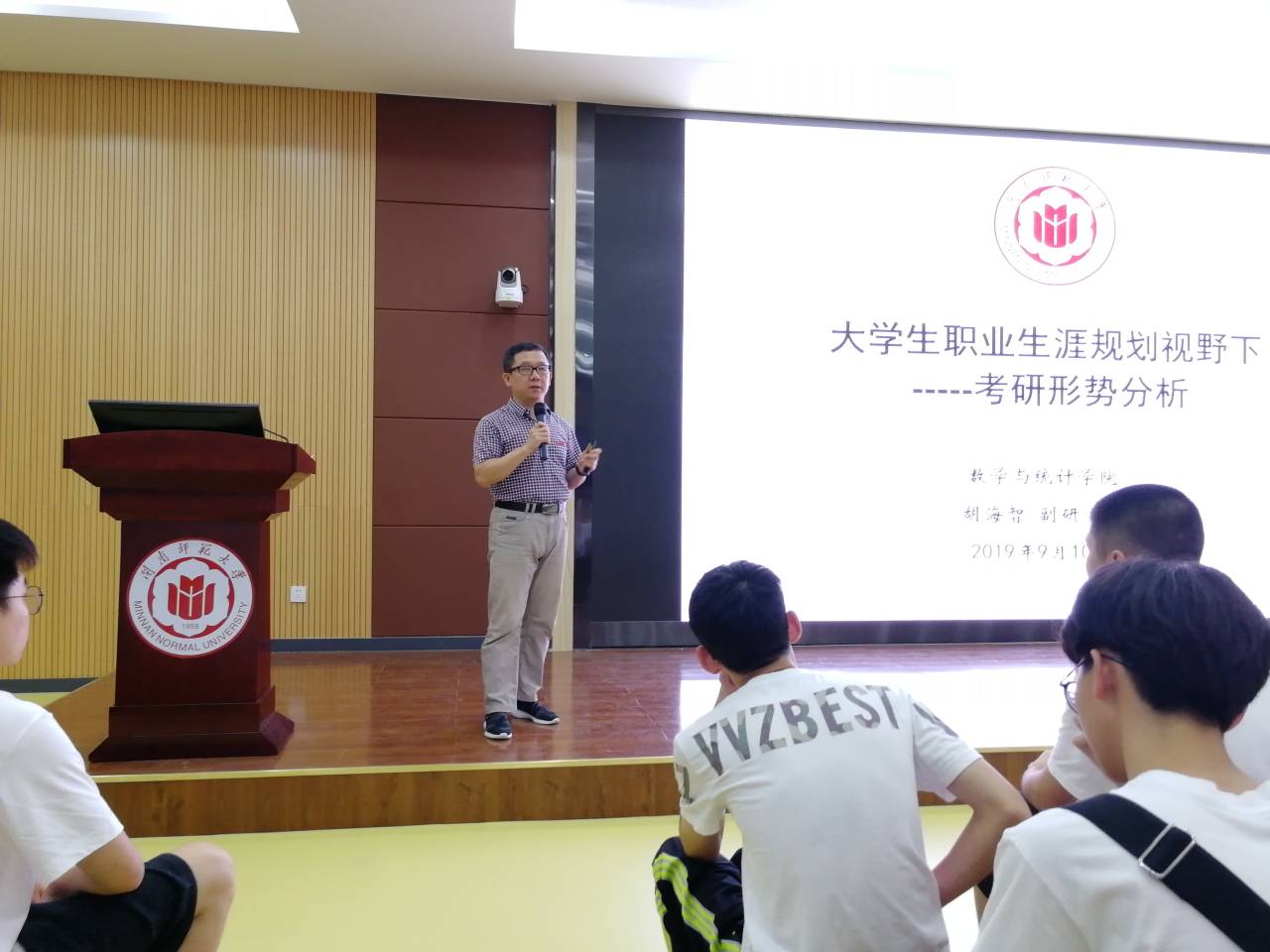 9月10日下午,公司副经理胡海智在砺志楼120为新生开展关于老员工职业规划视野下考研形势分析讲座。胡海智通过图表对近年来高校扩招,我国即将由高等教育大众化阶段进入普及化阶段的现状进行全面的介绍,深入分析了考研人数持续增长考研形势。并对全日制与非全日制学习方式、学术硕士与专业硕士的区别、推免生政策、研究生奖助政策、bevictor伟德专业分类、专业选择以及研究生入学考试科目、专业复习等方面进行详细讲解,鼓励广大新生要发扬高考拼搏进取的精神,尽早确立自己的人生规划和目标,早定位、早复习,形成良好的学习习惯,营造浓厚的学习氛围,为目标不懈奋斗。