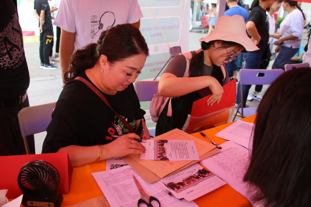 迎新日当天,到场最早的是准备迎接新生的志愿者和公司政工干部。在他们的精心准备下,迎新点各类迎新标语、指示牌清晰明了、身着志愿者服的志愿者们成了一道靓丽的风景线,他们认真地为学弟、学妹们办理每一项入学手续,并为他们解答各种疑惑。炎炎烈日下,志愿者穿梭在迎新现场的各个角落,有的志愿者拿着公司的铭牌耐心等待,有的帮新生提着沉重的行李,为他们引路。数十名志愿者在现场的热情服务,让2019级新生在报道第一天就感受到了数统大家庭的温馨。