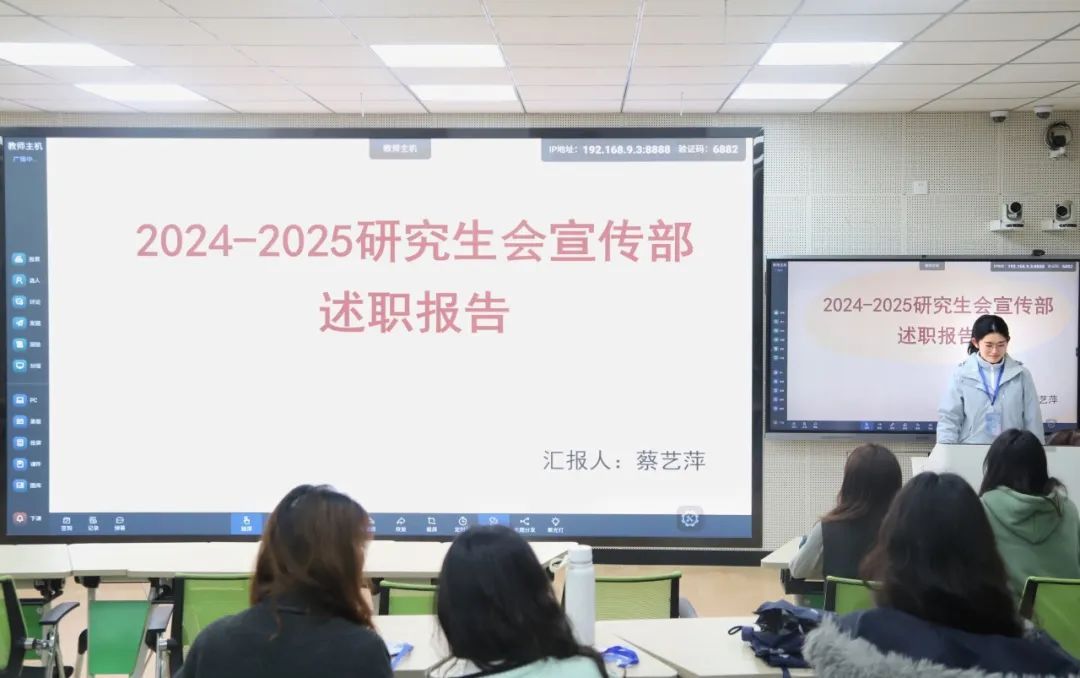 bevictor伟德研究生会作为公司员工工作的中坚力量,始终秉持着服务同学、助力成长的初心,积极搭建各类平台,促进学术交流与个人发展。为进一步总结过去、规划未来,提升员工干部的综合素质与工作能力,bevictor伟德研究生会于2月26日在砺志楼131教室召开2024-2025学年第一学期述职评议会暨员工干部春季培训会。公司团委副书记郑珊、研究生会指导老师及全体成员参加,会议由主席团成员魏雪敏主持。