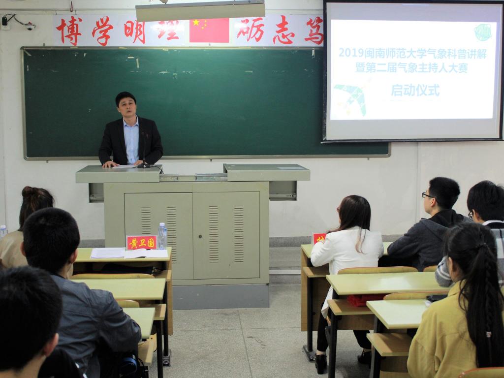 3月22日上午,由漳州市气象局和公司共同主办的“气象科普讲解暨第二届气象主持人大赛”启动仪式在砺志楼225顺利举行。漳州市气象局办公室主任黄卫国一行5人参加启动仪式,公司党委副书记林晓老师、团委书记陈明老师、专任教师代表黄菊博士、相关辅导员出席。启动仪式由漳州气象局气象主持人熊红主持。