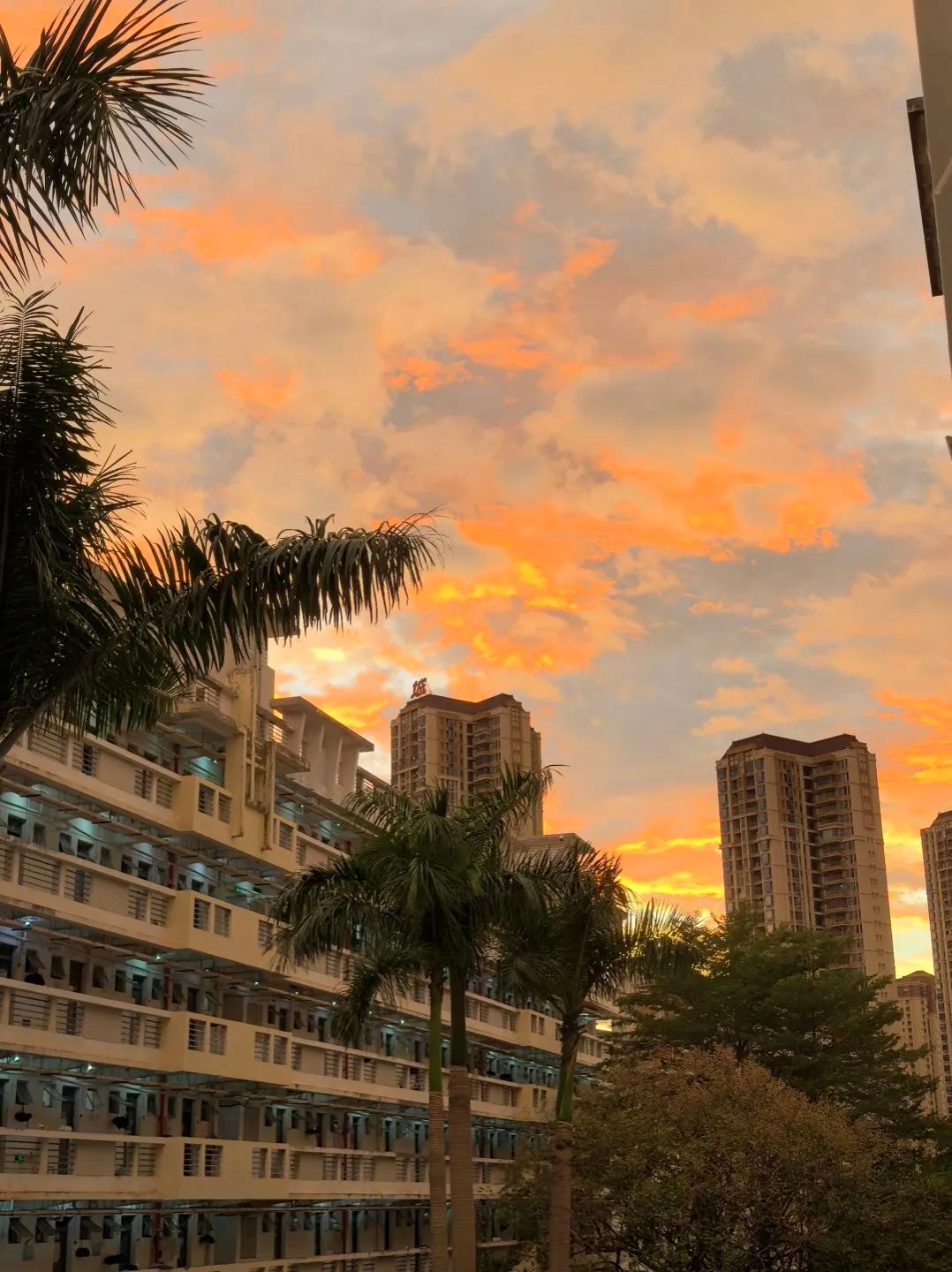 花与树在余晖里与天空共绘暮色浪漫,寄托着人们的美好愿景!