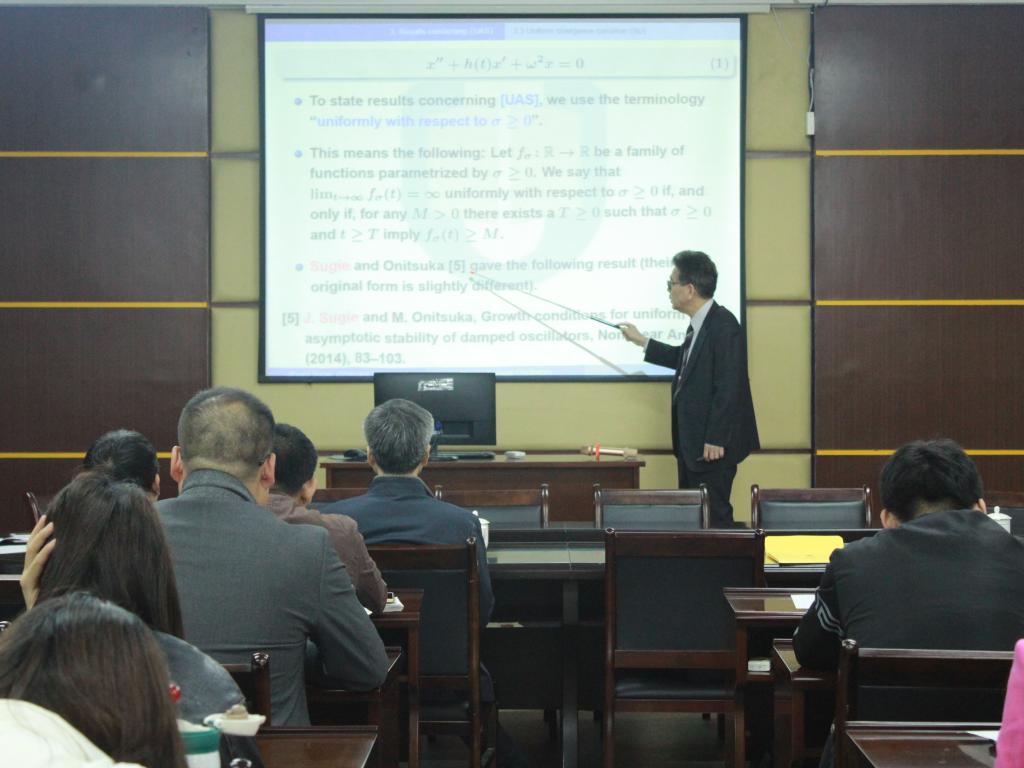 1月7日在bevictor伟德的学术报告厅召开了中日师生学术论坛。会上中日双方的师生代表进行了专题学术报告,bevictor伟德的部分教师与全体硕士生参加了会议。与会代表作题为《Asymptotic stability and uniform asymptotic stability of damped linear oscillators》、《Stability and oscillation of delay differential and difference equations》等共12个报告,报告主要聚焦动力系统的稳定性、生物数学、不确定性、高精度计算的有限差分方法,与会人员对报告主题作了深入的探讨。