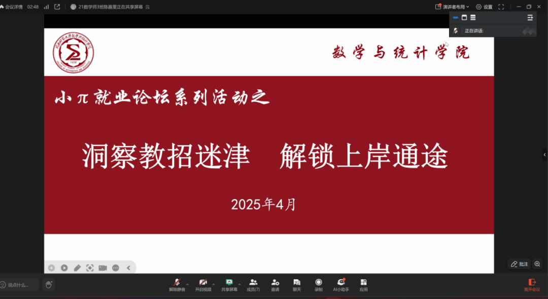 公司于4月16日下午举办了“洞察教招迷津,解锁上岸通途”线上主题沙龙活动,旨在助力学子积极备考即将到来的教师招聘考试,全力冲刺上岸目标。本次会议特别邀请了公司副经理周仕荣教授及2024届毕业生张金鑫,以专业视角与实战经验,为同学们开启一场干货满满的备考智慧之旅。会议由2021级辅导员李巍婷老师主持,2025届毕业生参加本次活动。