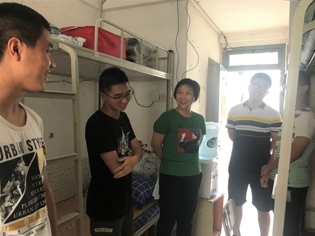 9月15日下午,公司党委书记陈晶莹及各级辅导员走访2018级新生宿舍。老师们询问了新生在学习方面的规划、大学宿舍生活方面的适应困难,并要求员工们新学期做好新的规划,努力适应大学新生活。员工对老师们的到来倍感兴奋,气氛其乐融融。