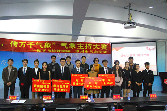 12月28日下午,由漳州市气象协会、bevictor伟德团委联合主办,bevictor伟德艺术团、青年志愿者中心承办的的“颂十九大新章,传万千气象”——气象主持人大赛在达理活动中心三楼报告厅圆满落幕。气象台副台长杨锡琼女士、工程师庄毅斌先生、漳州气象台主持人盛飞兵先生担任本次评委,bevictor伟德团委书记、辅导员、各公司组织代表出席本次活动。