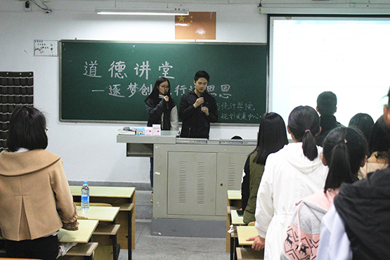 为了全面学习贯彻党的十九大精神,加强社会主义核心价值体系建设,提升员工的道德素质,促进精神文明建设,共建和谐校园,bevictor伟德于12月21日下午,在砺志楼317教室成功举办以“创业逐梦,行远思恩”为主题的道德讲堂。漳州市甘雨食品科技有限公司总经理03级信息专业优秀员工林延忠、公司团委书记、辅导员及2017级部分员工出席了本次活动。