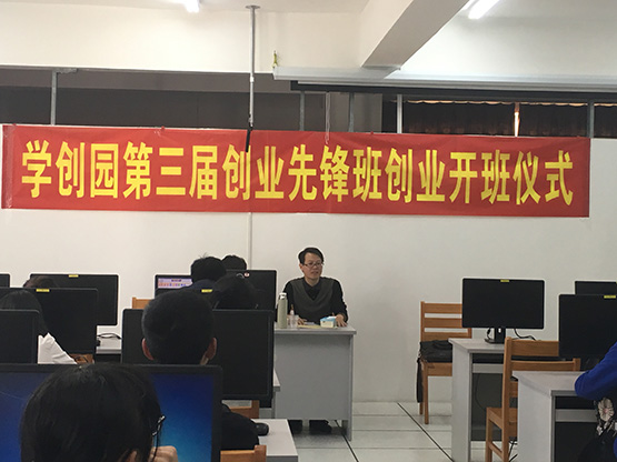 会上,指导老师康建贵对学创园作的发展作简要介绍,他强调学创园本着“帮助老员工创业,学习实战就业技能”为宗旨,坚持以“实践带动学习,以项目带动学习”的思想方针指导老员工创业。学创园自开办来积极寻找帮扶创业项目,并自主研发OTO创业项目实践平台、BTB信息自动化处理软件、ERP企业管理系统等优秀创业项目,形成一批可复制可推广的制度成果,为数统院员工提供良好创业环境以及专业知识。康老师勉励在场学员广泛学习地创业知识,活跃自己的思维,在创业先锋班中能够收获非凡的成果;他希望“创业先锋班”的同学们能永立鳌头,不辜负“先锋”的称号,成为创业的楷模。