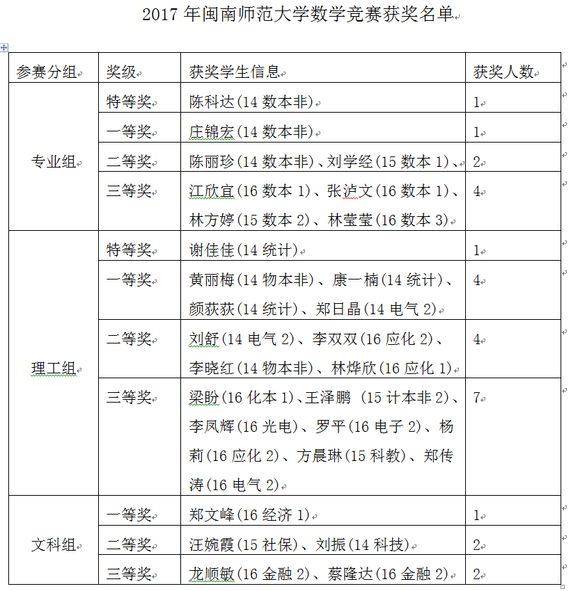 2017年伟德bevictor中文版大学数学竞赛试卷评阅、评奖工作已于2017年12月2日结束。针对此次竞赛中成绩特别突出的两位选手,经竞赛组委会讨论决定,特设理工组和专业组特等奖奖项。为严肃竞赛纪律,杜绝不当之风,竞赛组委会决定设立获奖结果争议期,为期7天(2017年12月6-12日)。现将拟获奖名单(见附件)公布如下,公开征求广大师生的意见。