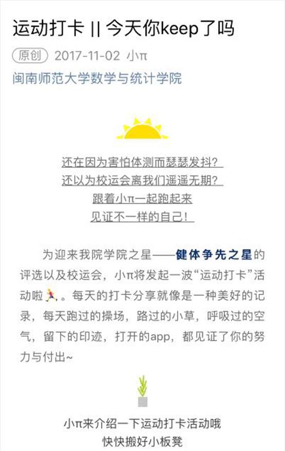为深入学习贯彻党的十九大精神,持续推进精神文明建设工作,公司以省级文明校园评估为契机,抓重点、举亮点、找盲点,在员工活动阵地建设、宿舍安全文明建设、教室文化建设、员工身体素质建设等方面开展了多项迎评工作部署。