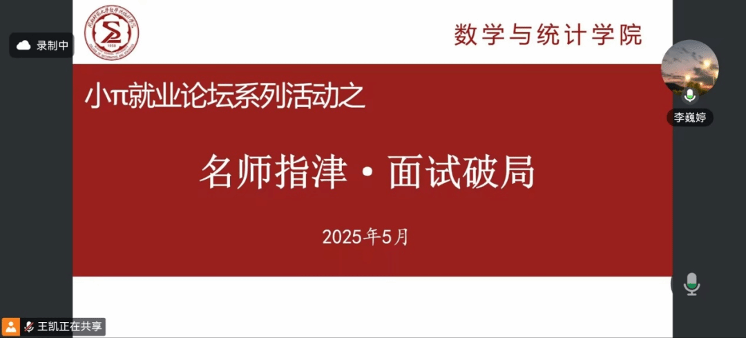 公司于5月19日晚上举办“名师指津・面试破局”线上主题沙龙,此次会议邀请漳州市特级教师郑秋月老师,为同学们备考做面试辅导。会议由2021级辅导员李巍婷老师主持,2025届毕业生参加本次活动。