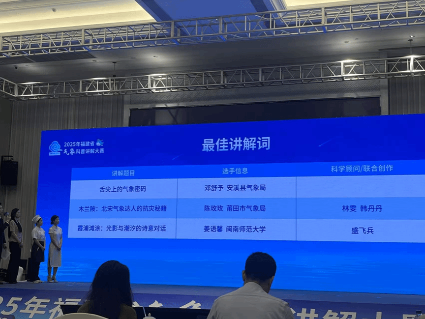 在近日举办的福建省气象讲解大赛中,公司2024级数学师4班姜语馨同学表现优异,荣获志愿传播赛道一等奖、最佳讲解词奖及“福建省十佳气象讲解员”称号,充分展现了公司新生的综合素养与潜力