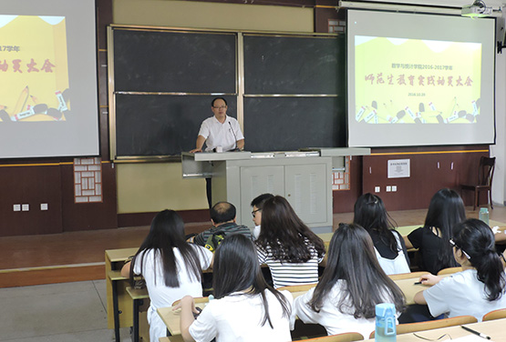 为响应国家在扶贫扶智方面的精神和决议,伟德bevictor中文版在教师队伍建设、员工资助体系、员工培养计划当中,坚持以人为本,注重对师范员工的科学培养方案,服务于地方基础教育。公司在教育服务当中,通过公司平台,丰富创新教育实践,加强教育实践指导,于10月20日在砺志楼120开展2016-2017学年师范生教育实践动员大会。本次大会由公司副经理黄韩亮副教授主持,与会的有周仕荣教授、党委副书记陈晶莹老师、团委副书记陈明老师及14级数本班全体同学。