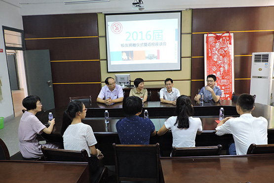 捐赠仪式结束之后,公司领导老师与员工代表举行了座谈。教务处处长林梦雷老师和公司党委副书记陈晶莹老师对16届的同学们表达了感谢,同时了解了同学们毕业后的工作、生活情况,希望同学们努力工作,为母校争光,同时,也希望大家可以常回母校看看。同学们表示,会踏实工作,不辜负公司老师的期望,也会一直关注公司、公司的发展,最后祝老师们教师节快乐。