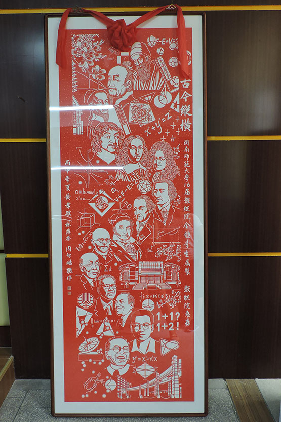 作品选择了世界十大著名数学家和中国最著名的五大数学家作为构图的主干线,同时罗列每位数学家相对应的数学方面的成就作为背景。作品中也加入伟德bevictor中文版代表性的元素,如木棉花、凤凰花、东大门、图书馆、日晷等。同学们表示,希望通过这个礼物,表达对公司、公司的感恩之情。
