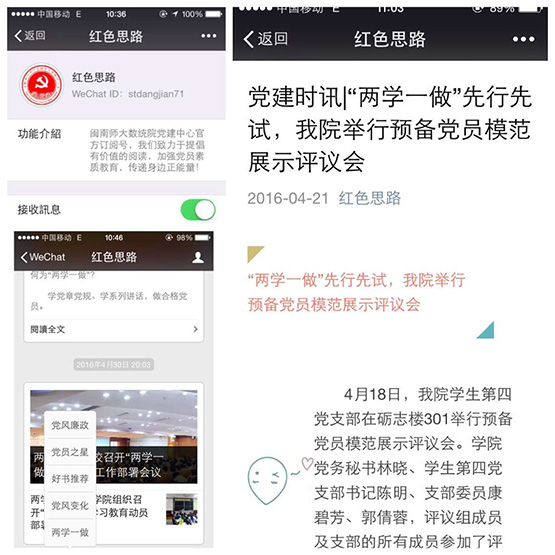 为了更好宣传推进“两学一做”学习教育,营造良好的活动氛围,公司党委高度重视,认真研究部署,广辟宣传阵地,既发挥传统宣传阵地如学习动员会、宣传栏等的宣传效应,同时也适应形势发展要求充分利用网络新媒介如QQ群、“两学一做”学习教育专题网、微信、微博等宣传渠道,在全院范围内迅速掀起“两学一做”学习教育热潮,确保广大师生党员都能积极投身到活动中,准确把握上级精神,及时了解动态,合力推进工作部署,扎实有效促进活动的深入开展。
