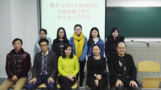 3月24日,数统院举行2012级首批卓越金融工程师论文答辩会。校内导师张敏峰、王艳、袁正中,校外导师华福证券高级理财师吴毅君,高级理财师陈香麟等,共同听取了卓越班员工的论文汇报。同时,就首批卓越金融工程师的工作与成效进行总结。