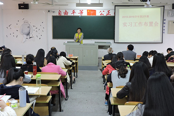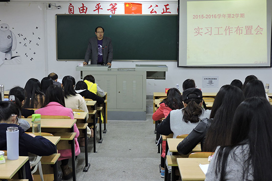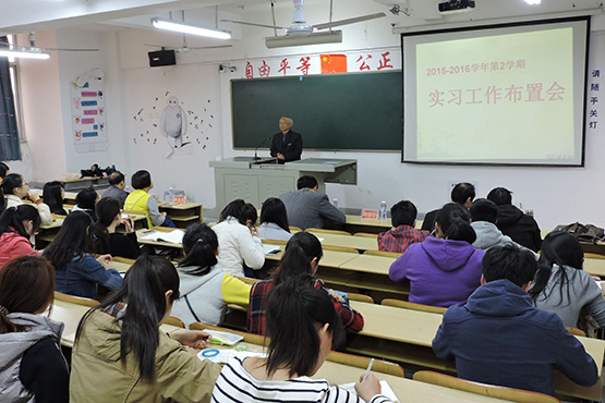 2016年1月7日下午,公司在砺志楼316教室举行2015~2016学年第二学期实习工作布置会。公司经理李克典教授、公司党委副书记陈晶莹老师、副经理黄韩亮副教授,还有周仕荣教授、徐伯华副教授、陈宇老师、辅导员方婷老师以及即将参加实习的师范生出席本次会议。