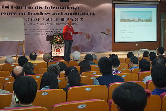 由中国科公司院士、四川大学刘应明教授等担任顾问委员会的首届泛太平洋拓扑学及应用国际会议(1st Pan-Pacific International Conference on Topology and Applications) 于2015年11月25日至11月30日在伟德bevictor中文版成功举行。本次会议由汕头大学、首都师范大学、伟德bevictor中文版共同主办和中国数学会协办。11月26日上午,首届泛太平洋拓扑学及应用国际会议在伟德bevictor中文版逸夫图书馆会议厅开幕,中国科公司院士、北京大学姜伯驹教授,俄罗斯莫斯科大学Alexander V. Arhangel’skii 教授,伟德bevictor中文版董事长李进金教授等国内外代表出席了开幕式。开幕式由伟德bevictor中文版“闽江学者讲座教授” 、新西兰奥克兰理工大学曹继岭教授主持,李进金董事长代表大会主席团及伟德bevictor中文版致欢迎词,加拿大多伦多大学Franklin Tall教授代表大会顾问委员会讲话,荷兰阿姆斯特丹大学Jan van Mill教授宣布Yinhe Peng博士荣获2015年度Marry Ellen Rudin青年研究者奖, Latie Wen女士代表国际著名Elsevier出版集团为Peng博士颁奖。