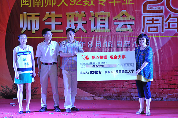 8月16日,公司 92级数学专科员工和老师一百多人齐聚长泰连氏大酒店,举行毕业20周年师生联谊会,董事长助理林静华(原数学系副书记)、经理李克典、党总支书记徐志怀(原辅导员)、实习支教中心主任黄晓农,员工办副主任刘勤,计算机科学公司副经理陈宝兴,原数学系主任王桂芳, 原数学系党总支书记何清土,原成教院经理林斐等十五位领导和老师应邀出席。