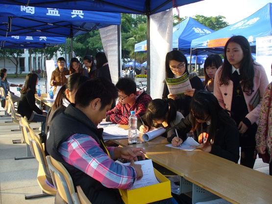 为了促进老员工积极就业,拓宽毕业生就业渠道,12月6日下午,数学与信息科学系与计算机系在弦歌广场联合二十多家企业举行现场招聘会。招聘会由数学与信息科学系职业规划发展中心与计算机系就业指导中心承办,面向全校员工进行招聘。