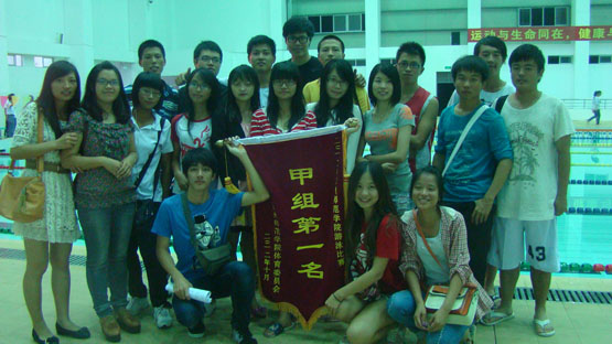在10月28日晚结束的院游泳比赛中,我系学子取得了优异的成绩:甲组男子4*50米混合接力第一(仰泳:罗兴光,蛙泳:颜志雄,蝶泳:沈斌,自由泳:陈林伟宏)、男子4*50自由泳接力第一(棒次:罗兴光,颜志雄,沈斌,陈林伟宏)、男子蝶泳50米第一名(沈斌,成绩36秒14)、男子50米仰泳第一名(沈斌,成绩39秒03)、男子50米蛙泳第三(颜志雄,成绩43秒32)、男子100米蛙泳第三(颜志雄,成绩1分39秒37)、男子100米自由泳第一(陈林伟宏,成绩1分22秒21)、男子50米自由泳第二名(陈林伟宏,成绩32秒06)、女子50米仰泳第五名(陈春华)、女子50米自由泳第六名(朱雪芳)、女子100米自由泳第四名(朱雪芳)。