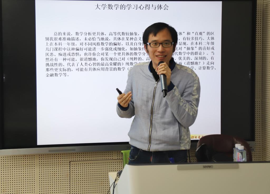 11月25日下午,包文涛于砺志楼131教室为20级卓师班开展《“天行有常,数学有序”关于渐进式数学研究的思考》为主题的讲座。包文涛首先介绍了他所指导的员工取得的优异成绩,分享了如何思考问题来构建数学模型,强调要实地考察,结合社会实践和生态效应。同时为大学数学学习提出了宝贵意见:一是要多看课本,做适量的习题,积累例子重视例子,将抽象的数学具体化;二是鼓励员工上课做笔记,将数学“熟悉化”;三是希望同学们合理地安排生活和课余活动,但要以学习为主。结束时,包文涛表达了对大学期间教授他的每一位老师诚挚的谢意,感谢他们教与自己学识与思维。