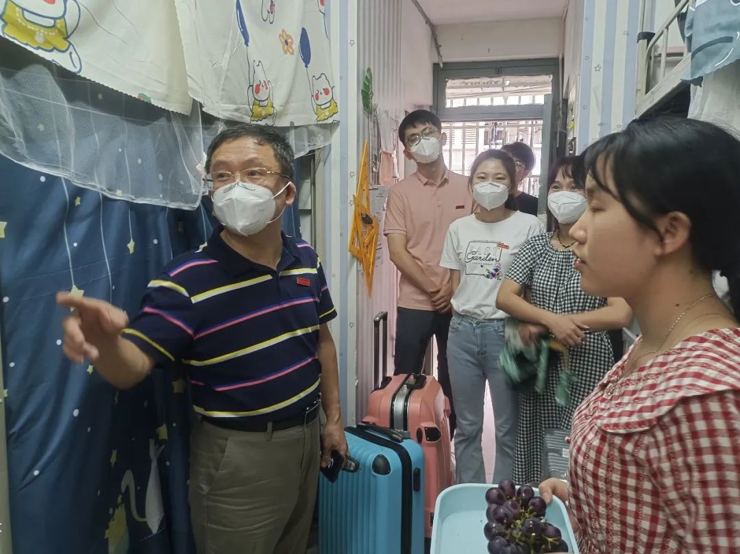 8月28日,公司党委副书记胡海智、团委书记罗晓林以及各级辅导员来到员工宿舍走访慰问,了解员工本学期返校报到情况,为同学们送上公司的关心和温暖。