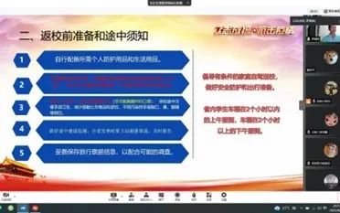 新学期扬帆起航,公司全体辅导员组织员工开展了线上“2022年秋季开学安全返校”主题班会,嘱咐员工们提高安全意识和加强自我防护,筑牢校园疫情防控基础,为员工科学、安全、有序地返校做好准备。会上,辅导员老师们再三叮嘱同学安全防疫的重要性,千万不能松懈,注意少聚集,出门佩戴口罩,勤洗手,多通风,返校途中加强防范。并对员工提出的问题积极回应,确保员工详细了解公司的各项通知要求。