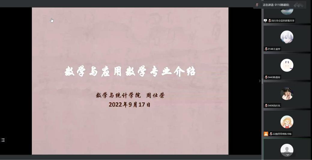 本科新生专业认知教育分为数学与应用数学(师范)、应用统计学、数据与计算科学三场。周仕荣、施建华、王晓峰三位教授分别担任主讲人,公司教师从专业发展历史及现状、专业培养方案、团队力量、主要课程、就业方向、特色培养计划等方向介绍专业,帮助新生对所学专业有一个系统的认识。此外,周仕荣教授向2022级新生介绍了公司卓师班培养计划,鼓励同学们好好学习、静下心来认真钻研,凭借自己扎实的专业知识进入卓师班。
