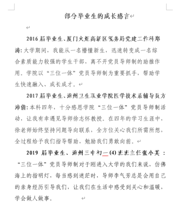 逐渐形成了一套科学、规范、合理的工作机制,以改革创新的精神探索出了支部党员活动新模式,建立了教师联系指导帮助员工的长效机制。通过党员导师制的影响和带动,全院形成了良好的教风学风,有效解决了员工专业、思想、生活、心理、就业等各方面的问题,使员工身心得以全面发展。