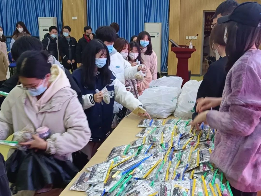 公司团委书记罗晓林老师、19级辅导员李伟俊老师为同学们分发考研加油包,预祝同学们考研场上旗开得胜。同学们纷纷也对公司、老师和学长的祝福表达感谢。