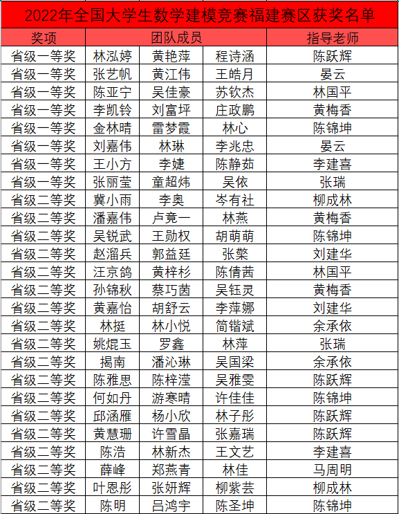 获得2022年高教社杯全国老员工数学建模竞赛福建省赛区一等奖8项,福建省赛区二等奖18项