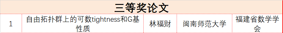 根据《福建省科协、福建省科技厅、福建省教育厅关于开展第十五届福建省自然科学优秀学术论文评选活动的通知》(闽科协学〔2022〕12号),在各单位评选推荐基础上,经第十五届福建省自然科学优秀学术论文评审委员会评审,公司赖春辉老师论文《On the number of edges in some graphs(关于某些图中的边数)》喜获二等奖,公司林福财老师论文《自由拓扑群上的可数tightness和G基性质》喜获三等奖!
