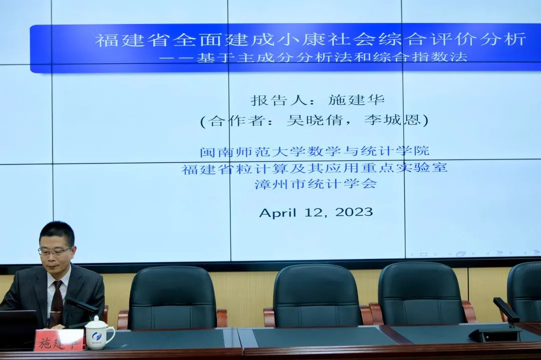 签约仪式结束后,漳州市统计学会会长、公司施建华教授作《福建省全面建成小康社会综合评价分析》专题讲座。讲座逻辑清晰、内容详实,让与会人员受益匪浅。