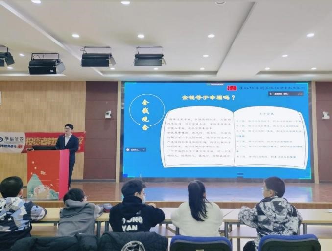 下午,华福证券投资顾问夏建政以“树立正确的金钱观”为主题分别从正确的金钱获取渠道、金钱的作用和金钱与幸福三个方面展开讲座,最后以压岁钱为例,教导学员们应该树立正确金钱观,合理计划和利用金钱。