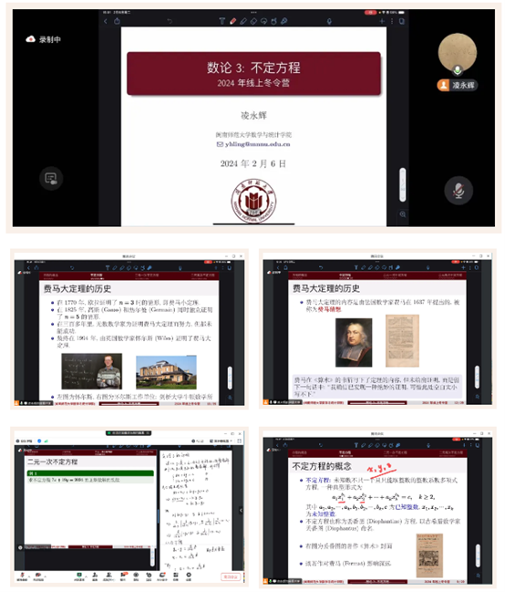 2月6日下午,由bevictor伟德副教授凌永辉老师为同学们讲授关于不定方程的知识点,凌永辉老师层层递进地为同学阐明关于方程及不定方程的相关知识点。凌永辉老师结合了相关例题加深同学们对相关知识点的理解。凌永辉老师还为同学们讲述了关于费马大定理的数学史,开拓了同学们的知识面,激发了同学们对数学的学习兴趣。课堂结束后,凌永辉老师鼓励同学们要多去思考数学问题,多去总结相关知识点,加深对相关知识点的理解。