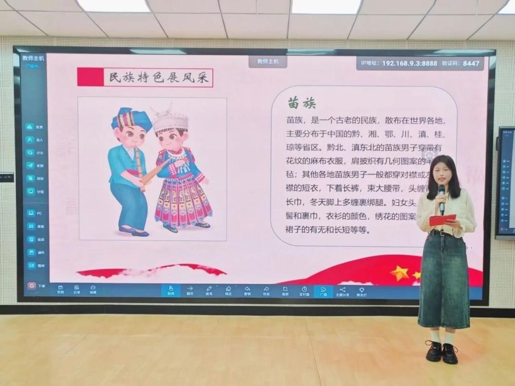 首先,同学们共同观看了《万华镜》短片,了解到各民族的服饰特色与民俗风俗,接着进行了“看图猜民族”的小游戏,这一环节让同学们对各民族的传统文化有了进一步的认识,同时加深了同学们对中华民族丰富民族文化的自豪感。