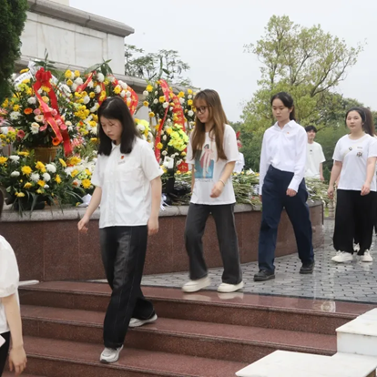 活动分为祭扫烈士纪念碑、学习英雄事迹两个部分。祭扫活动正式开始后,全体人员肃立,庄重地向烈士鞠躬。郑珊代表向烈士敬献鲜花。接着,全体在场人员向革命烈士英灵默哀,表达对先烈的悼念与崇敬。随后,同学们逐一有序献上鲜花寄托哀思。