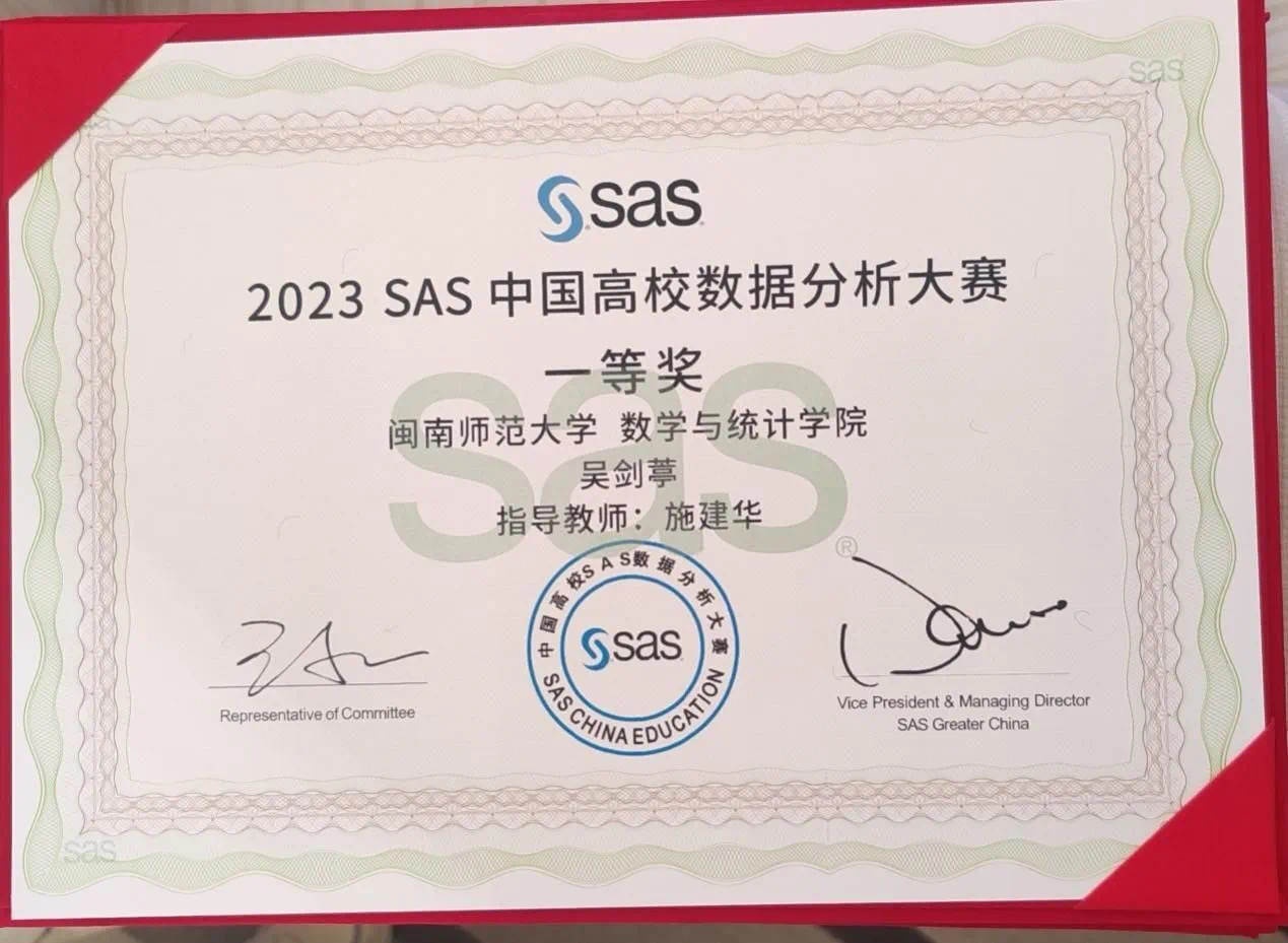 2024年4月27日,2023 SAS中国高校数据分析大赛总决赛在国家级新区雄安拉开序幕,在施建华老师的指导下,公司员工凭借出现的表现,荣获全国一等奖。