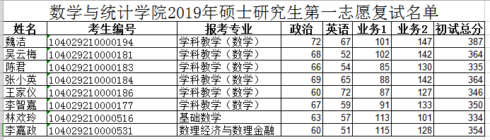 复试名单公示如下: