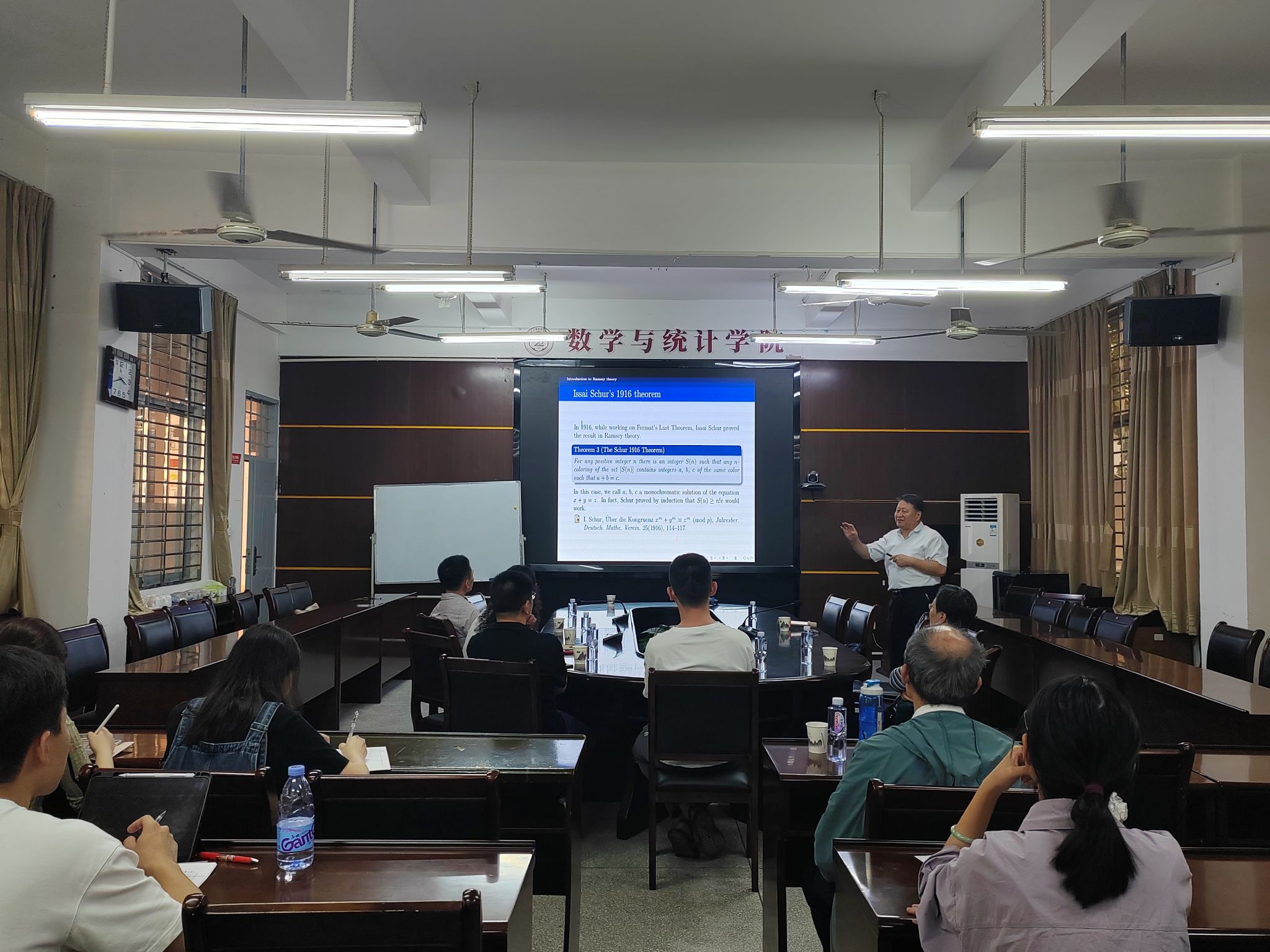 报告中,李学良教授主要介绍了Gallai-Ramsey数的前身和发展,以及Gallai-Ramsey型问题,并介绍了最近获得的Gallai-Ramesey数的一些结果,提出了一些尚未解决的问题,以供进一步研究。报告结束后,在座的师生就相关研究问题进行了探讨和交流。