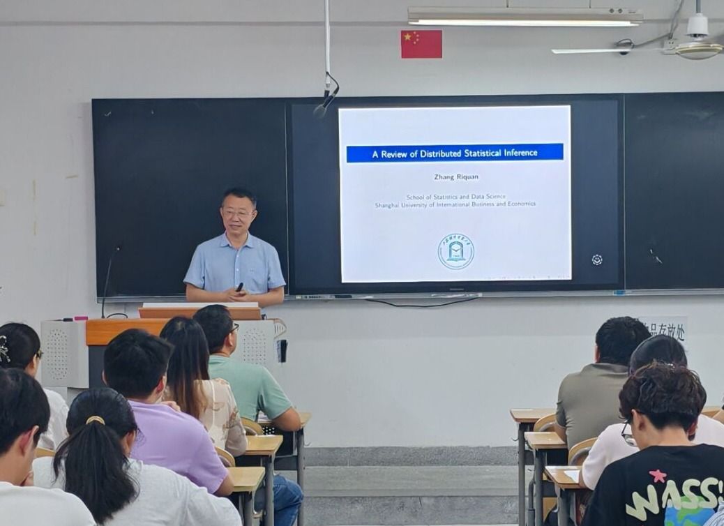 在讲座中,张日权教授深入探讨了分布式统计分析的相关文献,并对这一领域进行了系统性的综述。他首先指出,随着信息时代的快速发展,海量数据集的涌现对传统统计方法提出了显著挑战,同时也为研究者提供了开发新型算法的宝贵机遇。张教授详细介绍了分布式统计分析框架的多种方法,包括参数模型和非参数模型等常用的分析方法,阐述了这些方法在分布式框架下的核心思想与理论性质。他特别强调了在分布式统计分析中,通信成本与估计精度之间的权衡问题,以及其他关键考量因素,为听众提供了关于分布式统计分析前沿领域的全面视角。讲座结束后,与会师生与张日权教授进行了热烈的互动交流,就分布式统计分析的应用场景、技术细节及未来发展趋势等问题进行了深入探讨。本次讲座的成功举办,为公司师生提供了一个与国际知名专家交流的平台,拓宽了师生的学术视野,激发了他们对统计学研究的兴趣和热情。