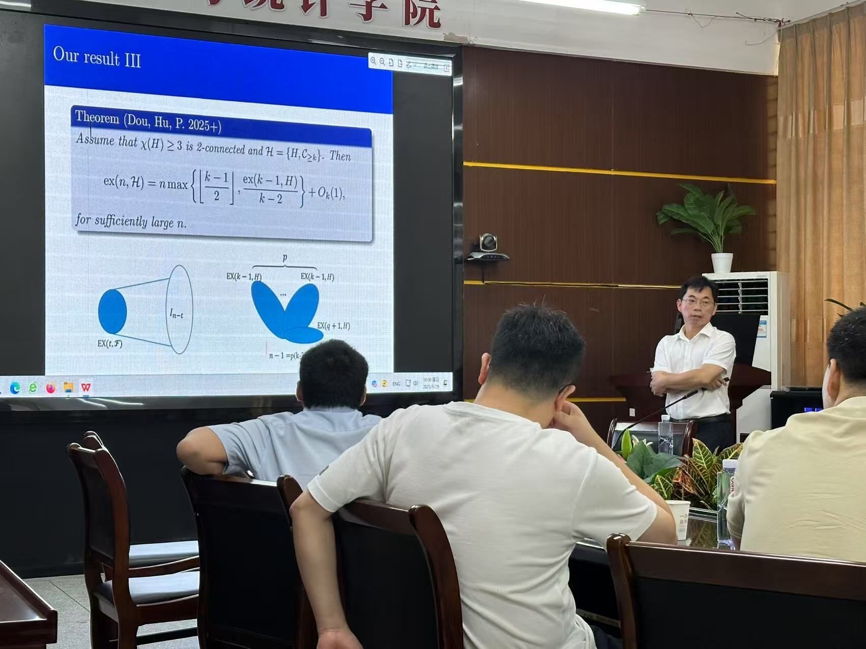 应公司邀请,6月29日早上,安徽大学彭兴教授在砺志楼114作了题为《Turan number of cliques plus cycles and related problems》的讲座。相关师生聆听了此次讲座,讲座由卢福良老师主持。